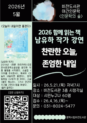 ÆòÅýø³ ºñÀüµµ¼°üÀº ¿À´Â 5¿ù 21ÀÏ Àú³á 7½Ã ³²À¯ÇÏ ÀÛ°¡¸¦ ÃÊûÇÏ¿© ¡®Âù¶õÇÑ ¿À´Ã, Á¸¾öÇÑ ³»ÀÏ¡¯À» ÁÖÁ¦·Î ¾ß°£ Àι®ÇÐ °¿¬À» ÁøÇàÇÑ´Ù.
